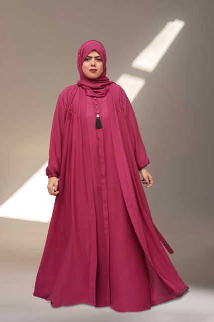 Plain Zoom Nida Abaya with Chain Neck & Tie Sleeves