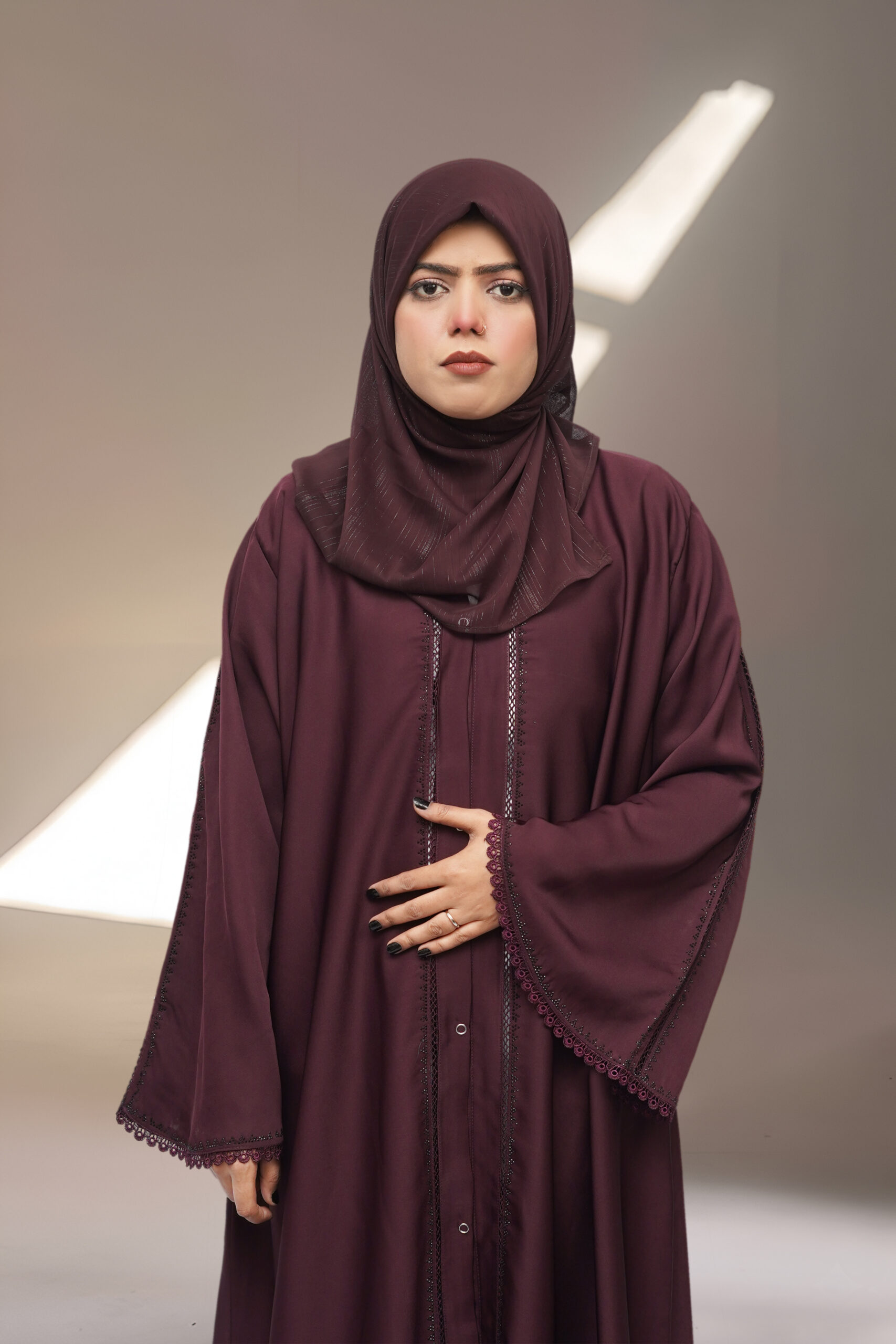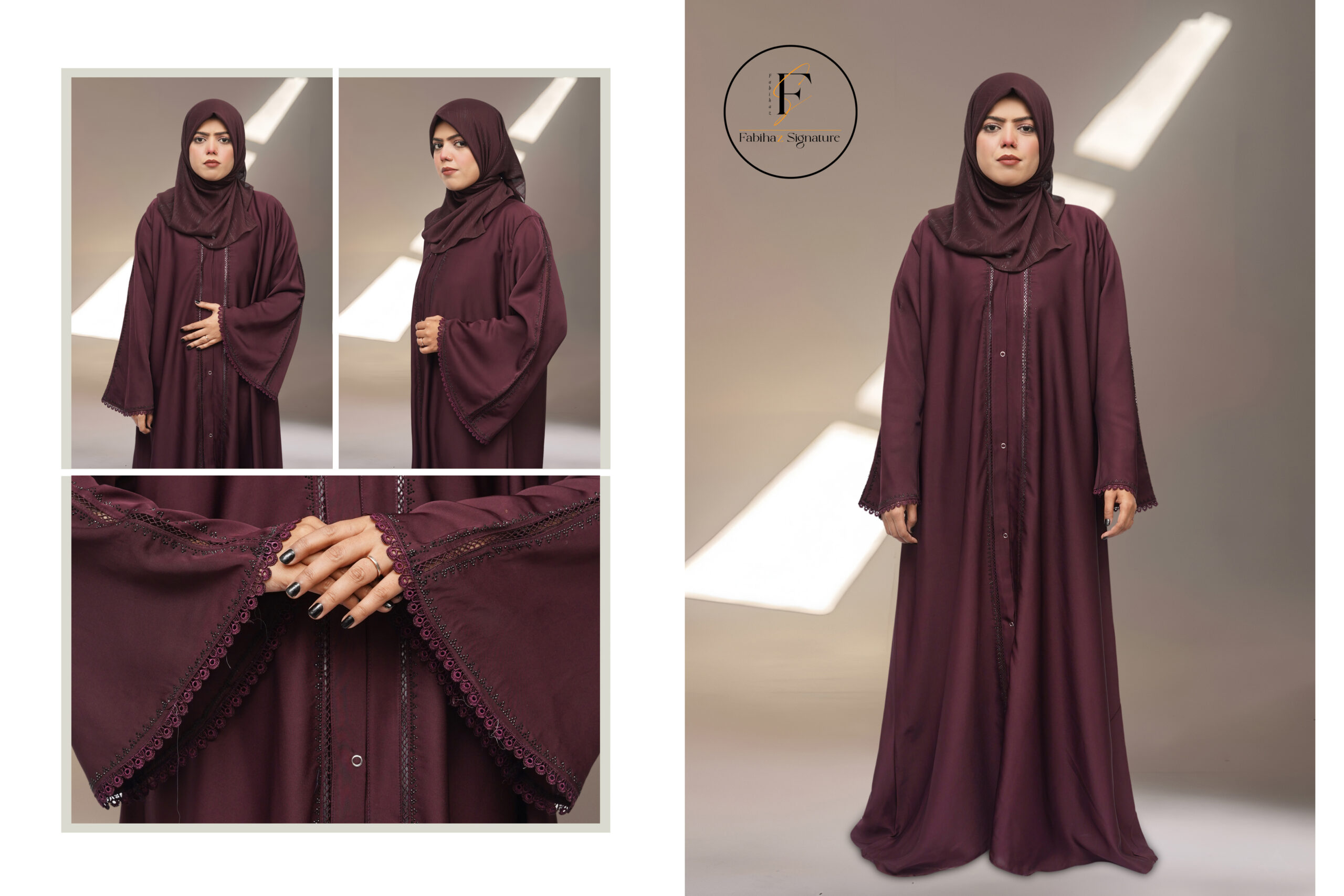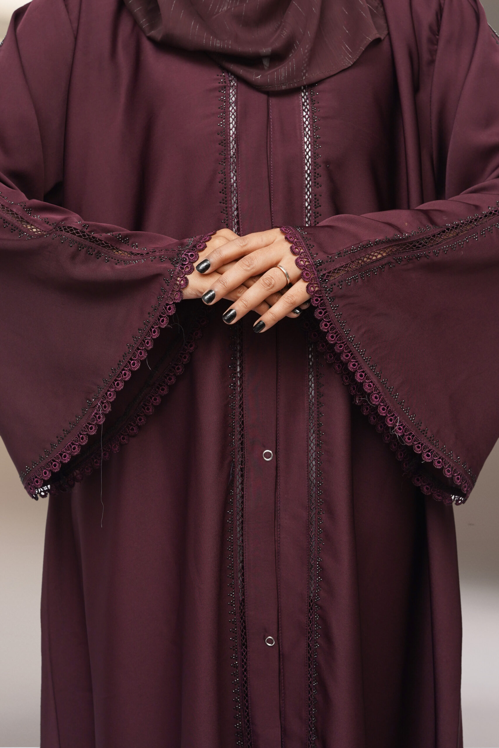 Be the first to review “Open Style Nida Abaya with GPO Lace & Stone Work” Cancel reply