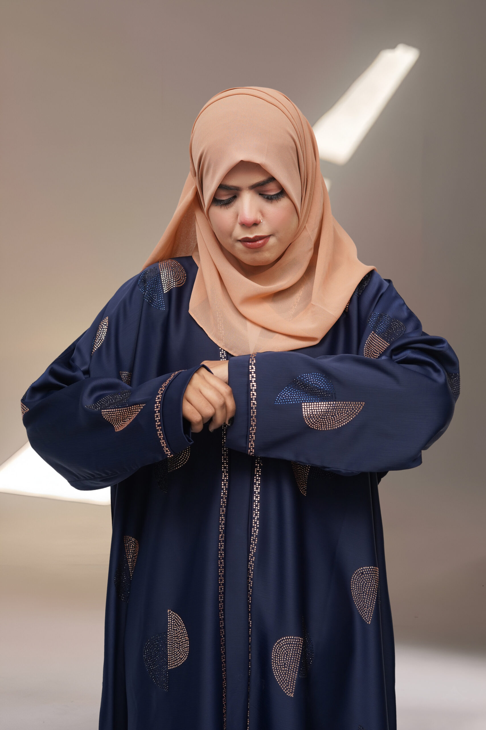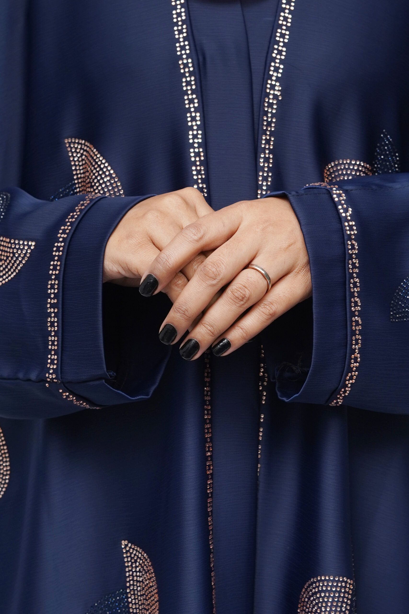 Open Style TikTok Fabric Abaya with Double Colour DMC Stone Work
