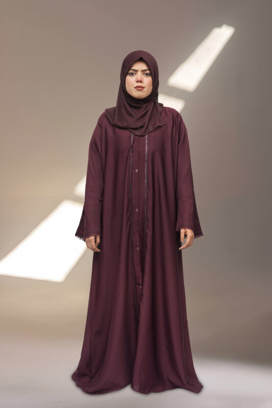 Open Style Nida Abaya with GPO Lace & Stone Work
